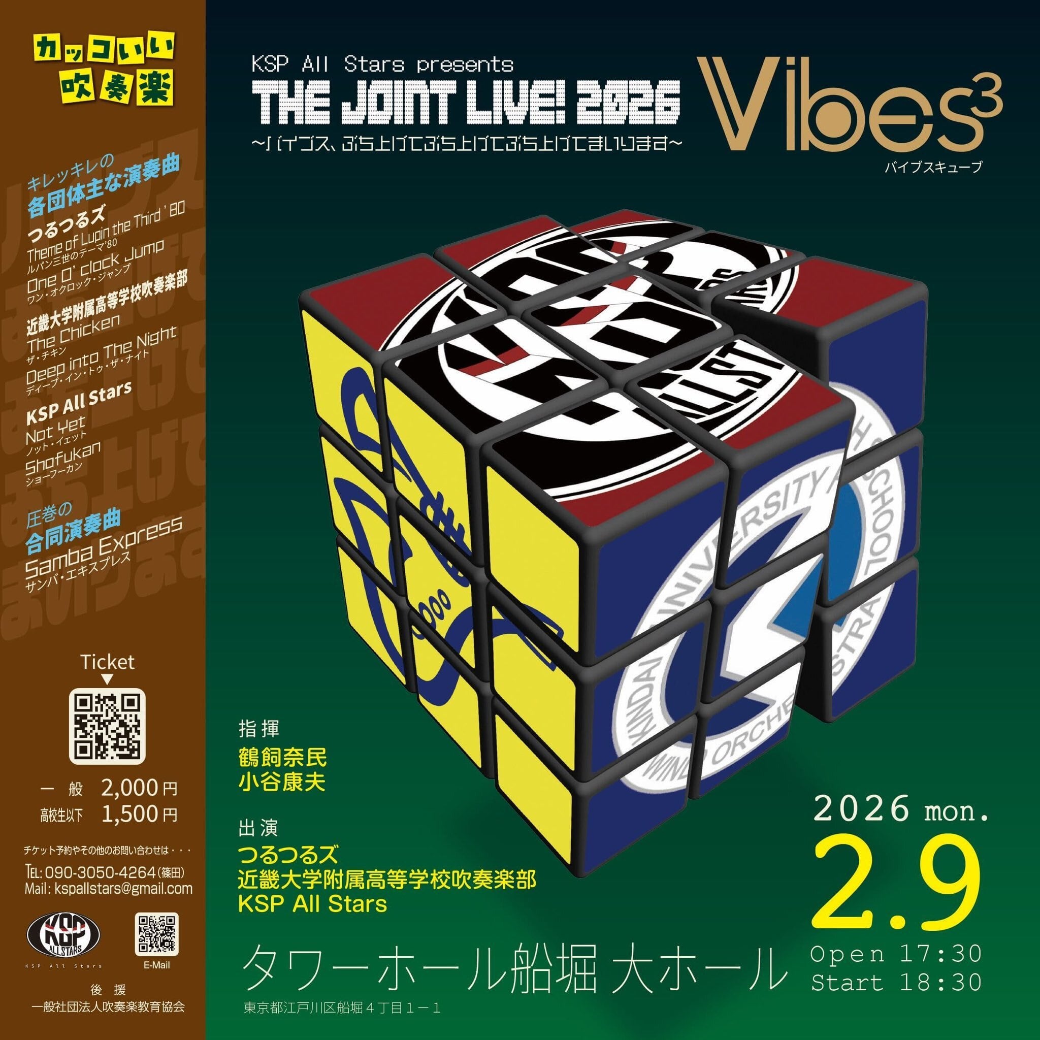 2026年2月9日、タワーホール船堀で開催した、KSP All Stars・近畿大学附属高等学校吹奏楽部・つるつるズによる3団体合同ライブ『KSP All Stars presents The JOINT LIVE! 2026 Vibes³ 〜バイブス、ぶち上げてぶち上げてぶち上げてまいります〜』の公演の様子を全編収録したBlu-ray / DVDです。
